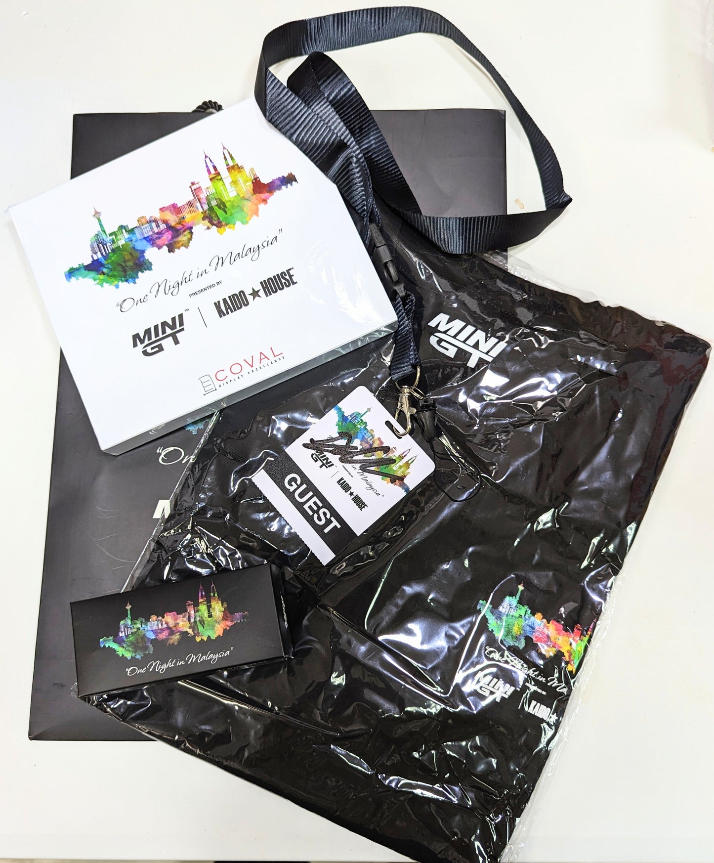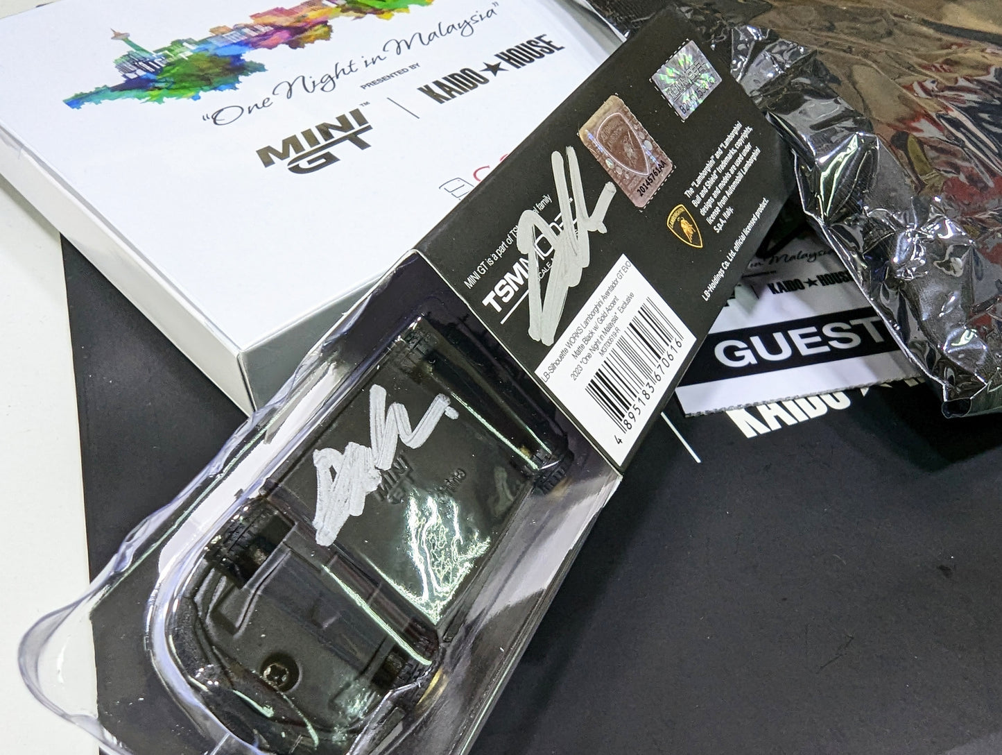 Kaido House GT-R R34 (Dinner Car) + MINI GT #519 One Night in Malaysia exclusive Bundle Lamborghini LB-Silhouette WORKS Aventador GT EVO Matte Black w/ Gold Accent