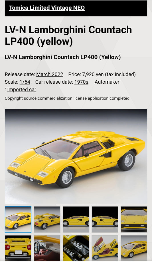 Tomica Limited Vintage Neo LV-N Lamborghini Countach LP400 (yellow)