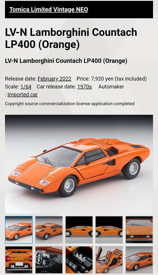 Tomica Limited Vintage Neo LV-N Lamborghini Countach LP400 (Orange)