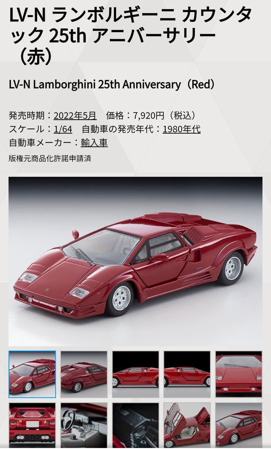 Tomica Limited Vintage Neo LV-N Lamborghini Countach 25th Anniversary Red
