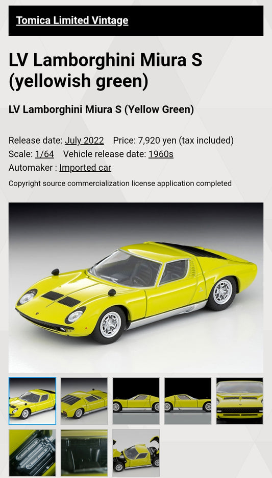 Tomica Limited Vintage Neo LV-N Lamborghini Miura S (Yellowish Green)