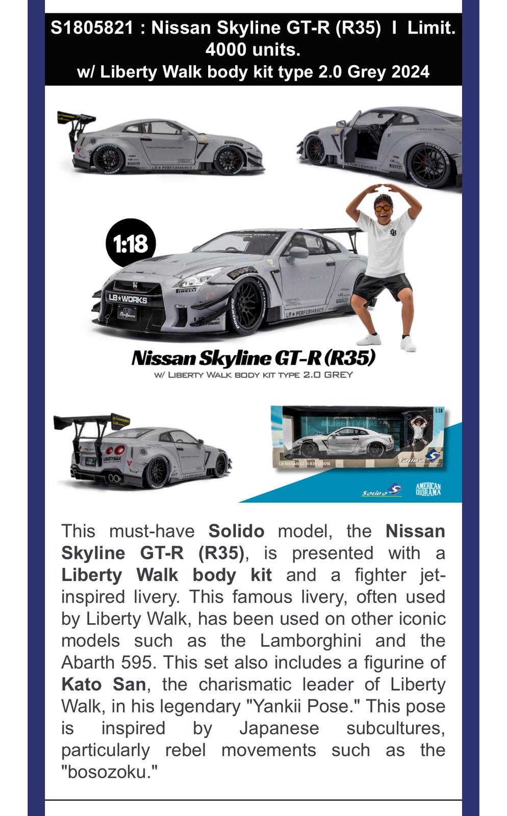 [shipping included] Solido x American Diorama 1/18 LB Nissan Skyline GT-R (R35) + figure set
