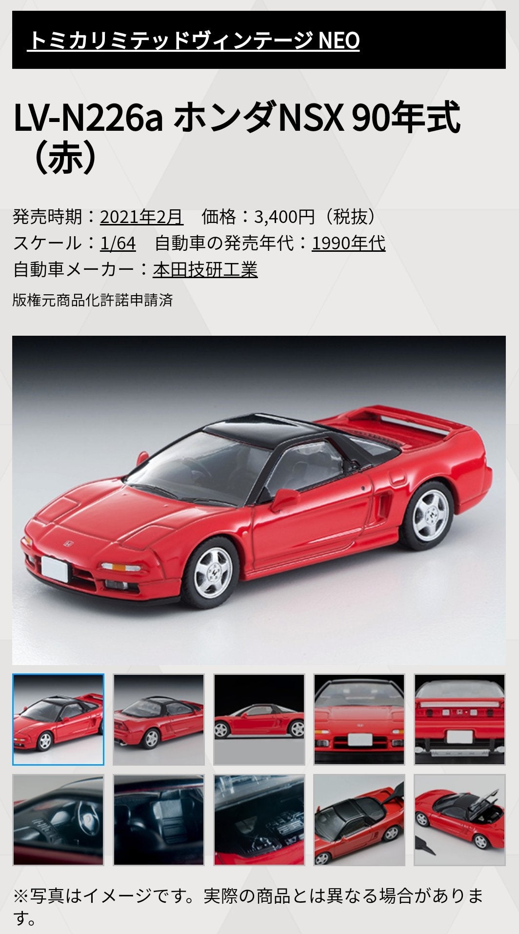 Tomica Limited Vintage Neo LV-N226a Honda NSX 90 year model (red)