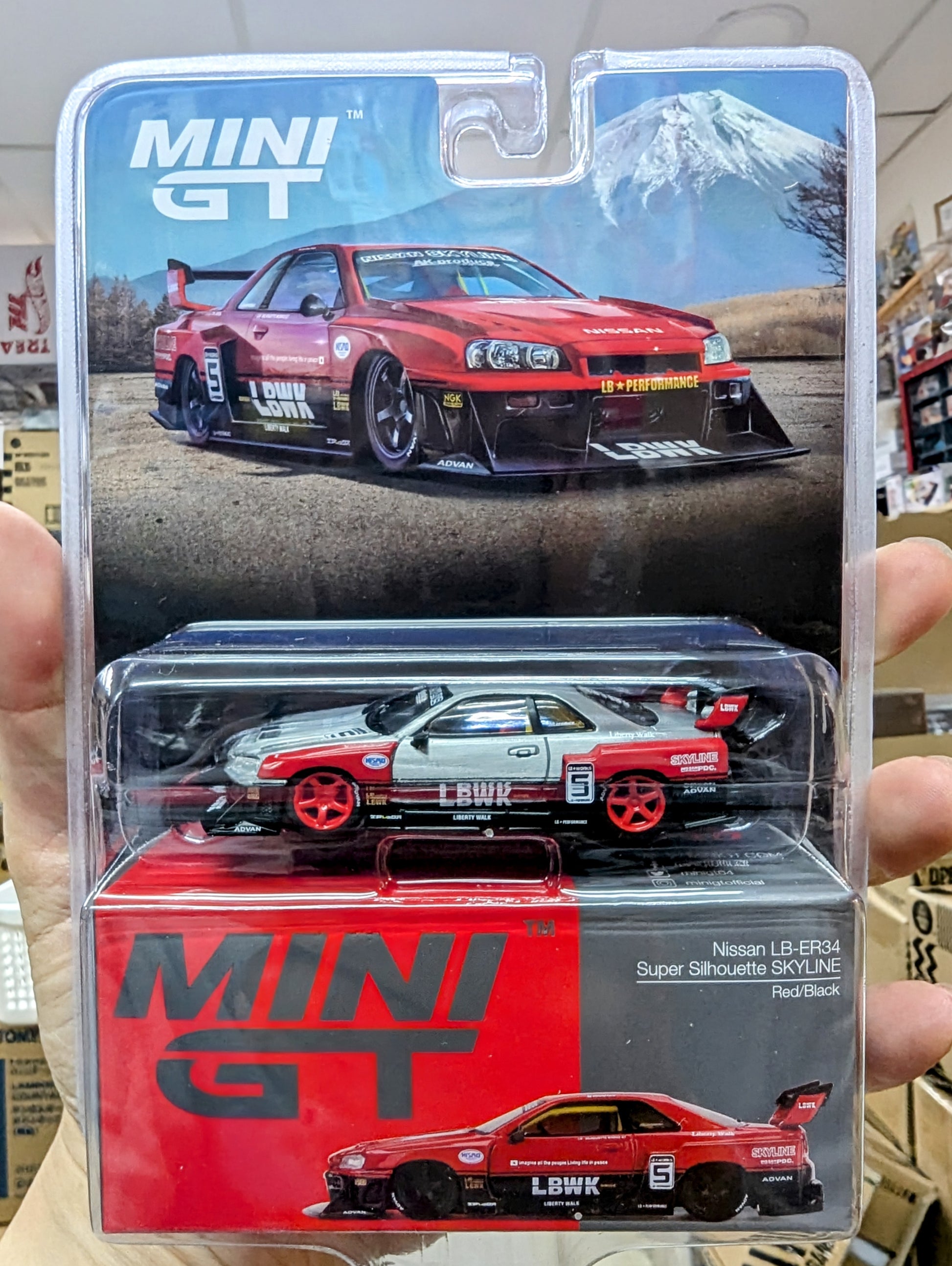 MINI GT x Mijo #843 Nissan LB-ER34 Super Silhouette SKYLINE Red/Black Blister Packing